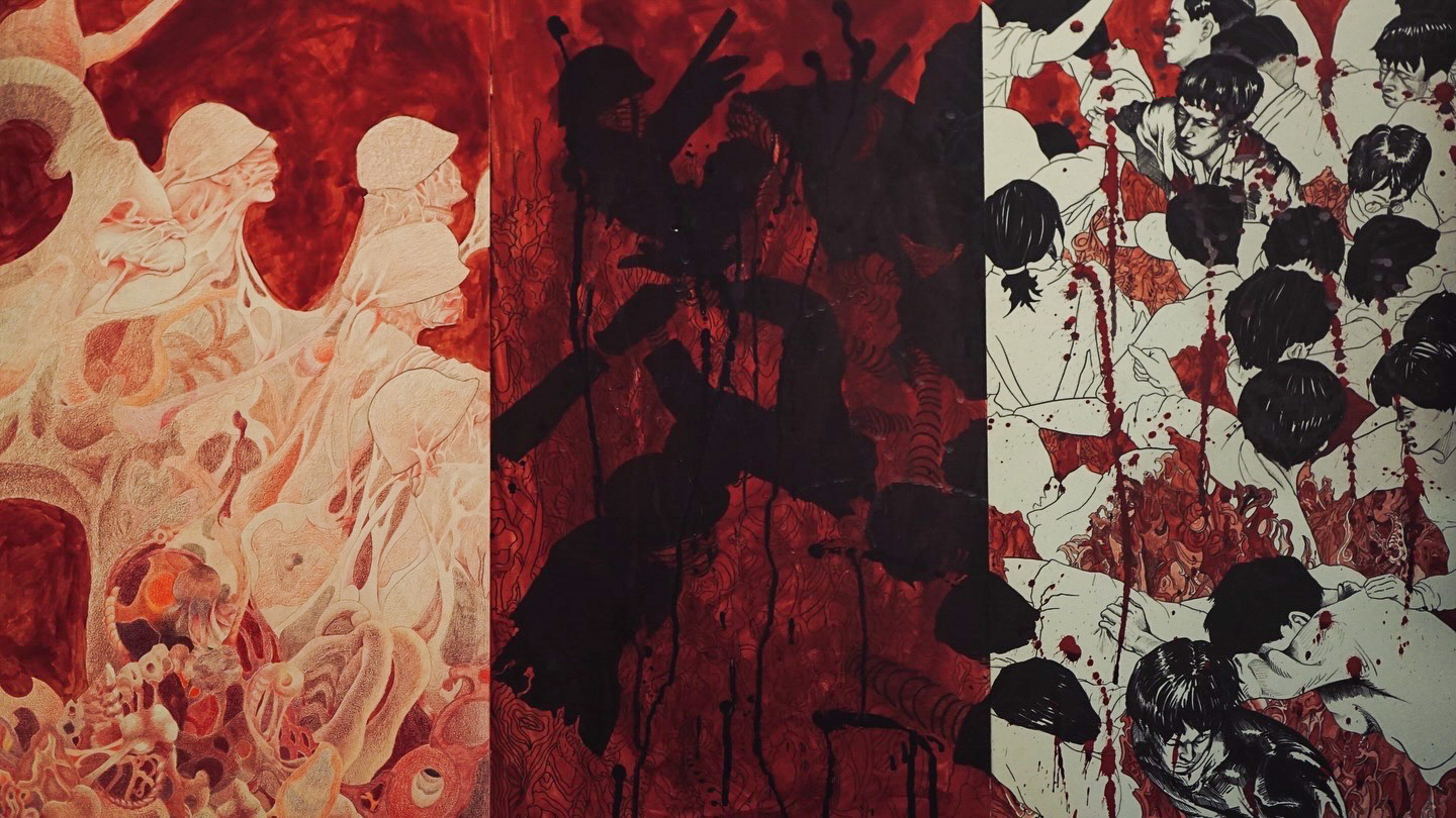 A RUPTURE AT THE CENTER OF THE EARTH 2025 - TRYPTIC - ARCHIVAL INK ON ILLUSTRATION BOARDÂ